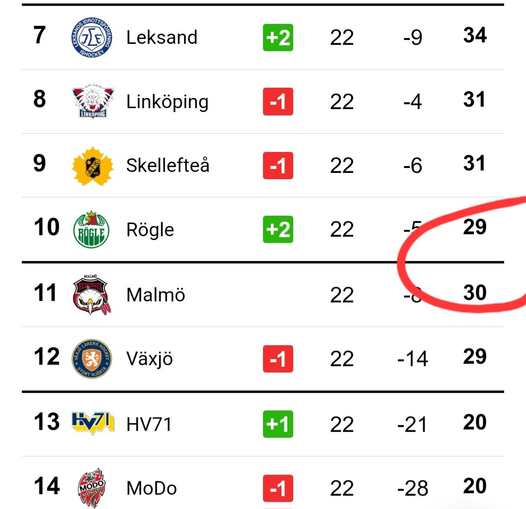 Metallica Äckligt jämnt mellan tabellplacering 7-12 om inte Leksand vinner sin match. Känns som man kan tappa eller klättra ganska fort framöver.