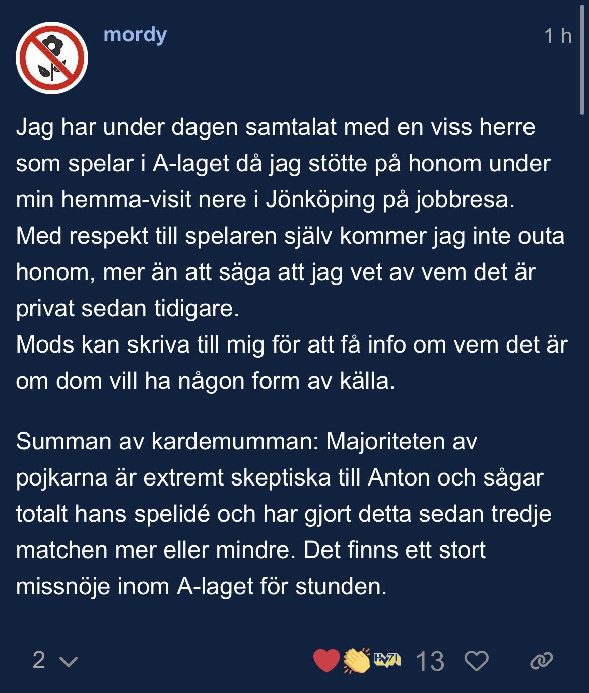 Stolpe ut Jag sitter i Sundsvall ikväll. Dom är nöjd med 3 poäng. Men satan så sega deras ben såg ut ikväll. Jag misstänker att dom kommer sjunka i tabellen.