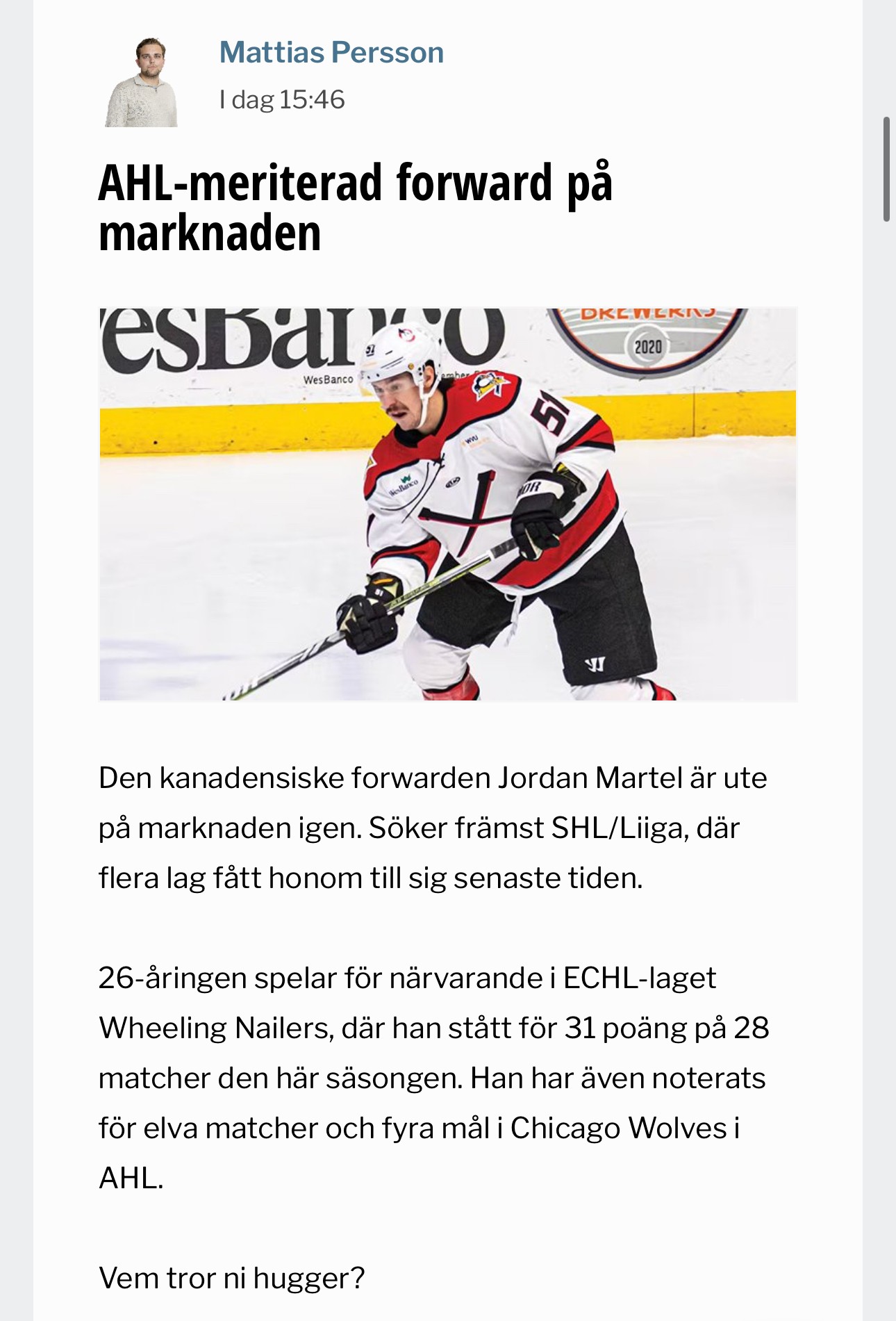 East Jacke Tomkins kommer inte att spela i hv71. Clara kommer inte att spela i SHL. Har du fler funderingar eller väljer du att scrolla upp lite och läsa igenom?