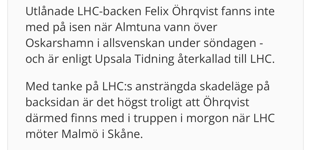 Sen om man kunnat få in att man kunde kalla tillbaka honom så visst det hade väl varit bra, men har svårt att bli upprörd över det. LHC ska inte behöva stå & falla på ifall man kan kalla tillbaka en spelare från HA. Då har något annat gått väldigt fel och det borde vara det man blir upprörd över