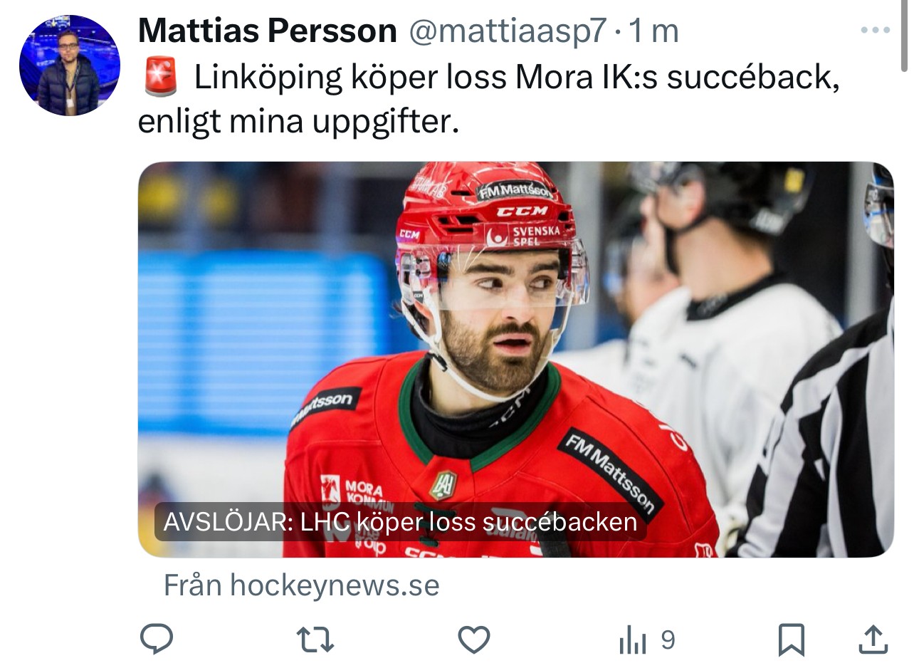 Kjeppkinesen Mranonymous QKEN. Bra ålder och garanterat välscoutad. 30 pinnar på 40 matcher i ett svagt Mora är helt okej siffror. Jag är försiktigt optimistisk tills jag inte längre är det.