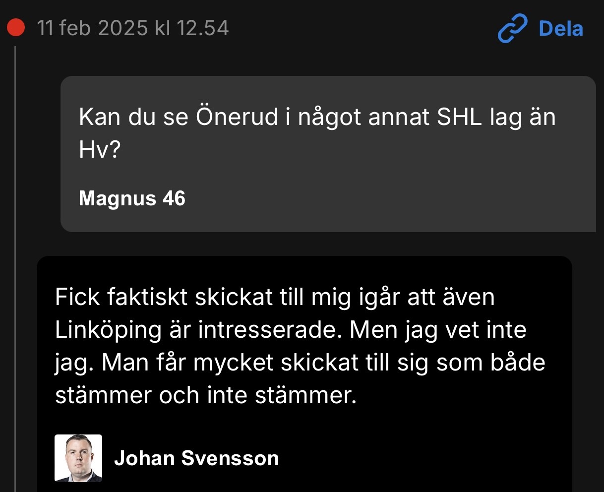 Visst, övergångar inom hockeyn är inte lika laddade som inom fotbollen och flera direkta övergångar mellan LHC och HV har gjorts genom åren, men någonstans måste en gräns dras. Önerud är en HV-produkt ut i fingerspetsarna, han har avgjort en SM-final för dem, hjälpt dem upp från HA och har därtill varit kapten för klubben. Om han skulle gå till LHC skulle det bli ramaskri från både HV- och LHC-supportrar och rivaliteten mellan föreningarna skulle urholkas rejält.
