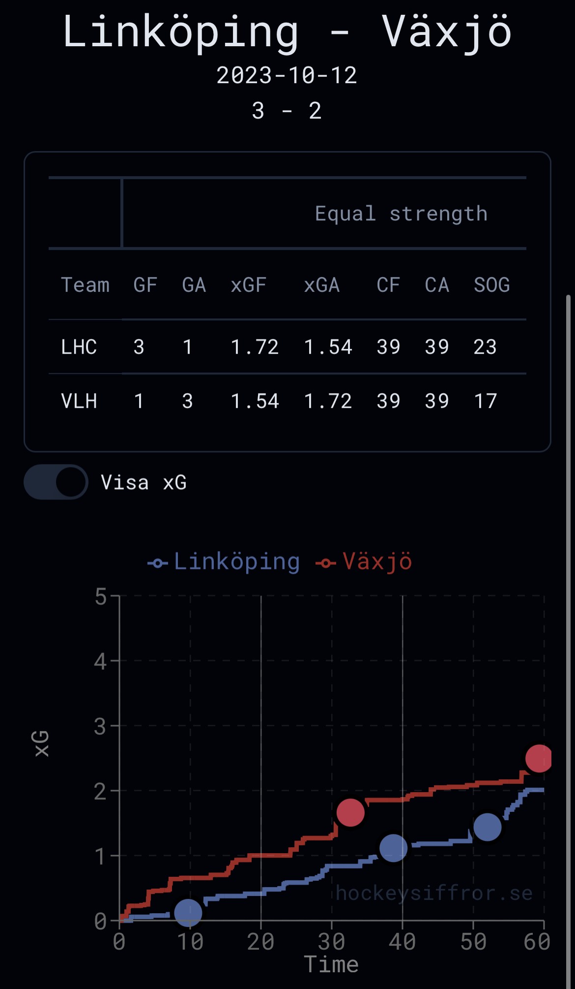 Redan igår när jag skrev dessa rader “En vinst skulle sitta fint och på så sätt ta tre i rad” så hade jag en känsla att vi kunde behålla alla tre poäng hemma. Så nu när matchen är över så va det skönt att se att känslan stämde. Eller man kanske ska säga att LHC börjar sätta sitt spelsystem, idag vart jag jävligt glad att alla spelare verkligen visade hur ett tufft och hårt lag gör allt för att vinna.