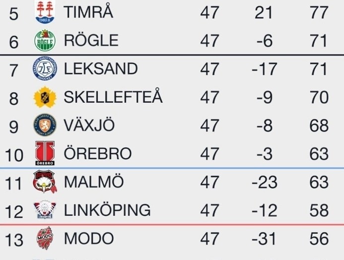 Jocke Malmös mål avgjorde fyra lags öden. Malmö till slutspel, Rögle ner till åttondel. Timrå upp till topp-6 och Lekisand ner till ingemansland.