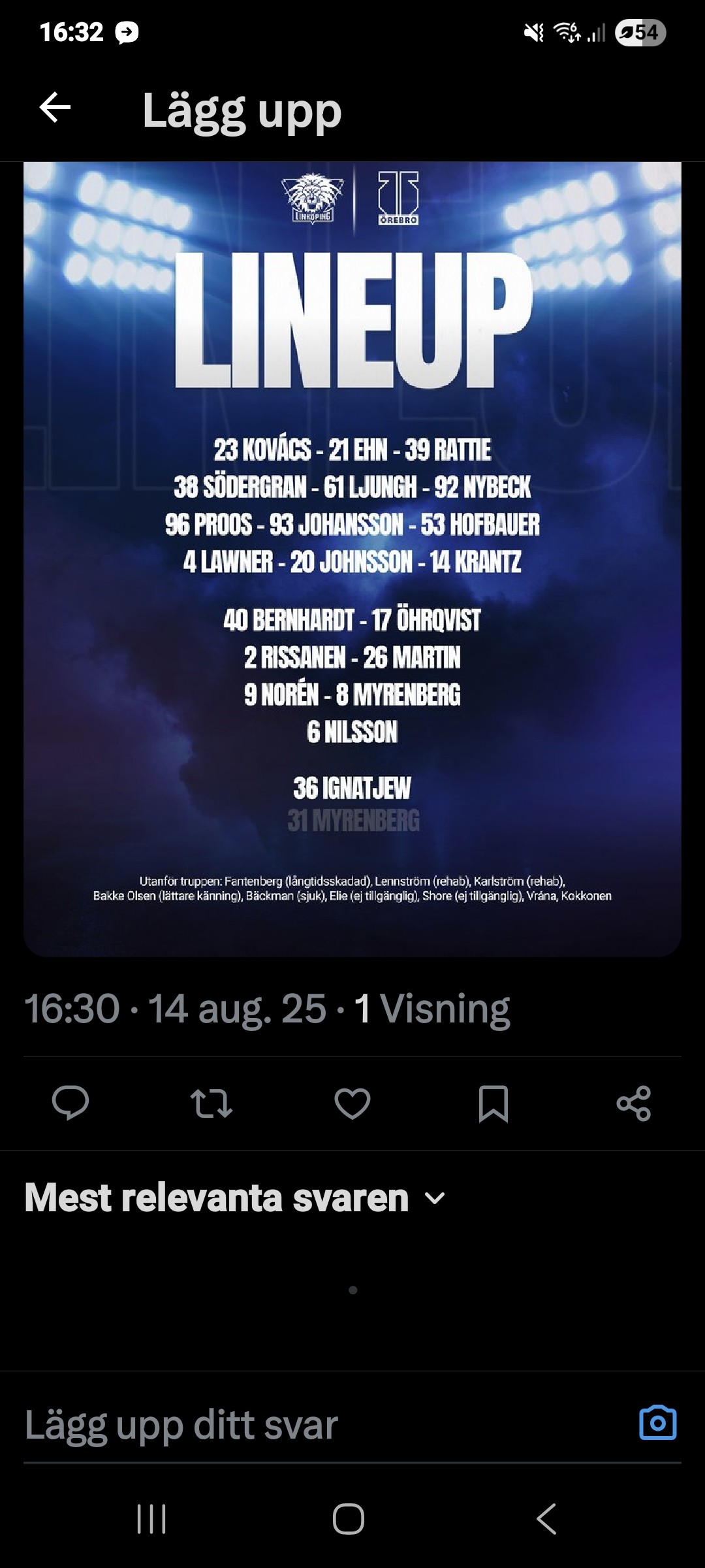 jg Minns inte direkt detaljerna från första matchens uppspel men det var väl det offensiva spelet som såg mest lovande ut tyckte jag. Har för mig att det ändå blev några kontrollerade uppspel in i offensiv zon, även i powerplay att de kunde åka in och ställa upp ett spel utan att chansdumpa/tappa puck. Ska nog gå tillbaka och titta igen för att friska upp minnet. Med lite bättre avslut kunde det nog blivit 2-3 mål framåt i den matchen.