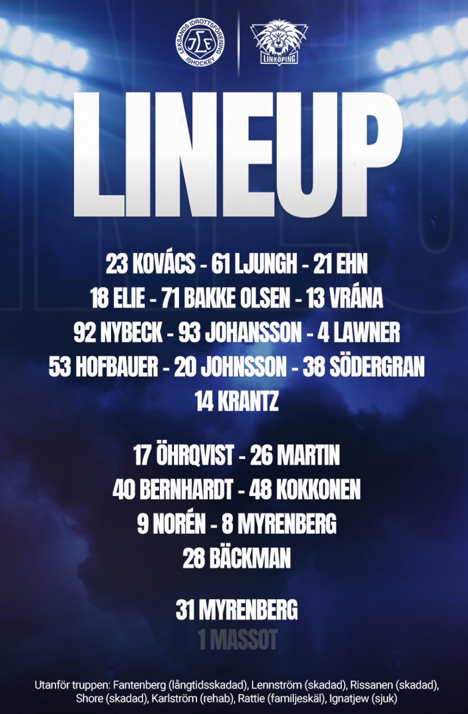 Ndur Vet inte hur säkert det är, men Enköping SK har lagt ut på Instagram att Loke Krantz (med ESK som moderklubb) spelar för LHC ikväll. Helt rätt tycker jag, men det borde väl betyda att ytterligare någon forward saknas (om nu inte Krantz startar som extraforward).