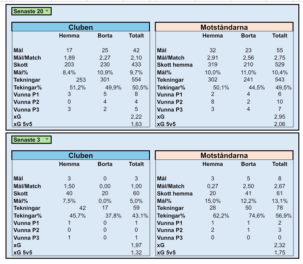 Enda lilla problemet är att SHL ännu inte förstått att det är underliggande siffror summerat över truppen som ska in i tabellen i högraste mest signifikanta kolumnen och inte fånigheter som poäng och gjorda mål.